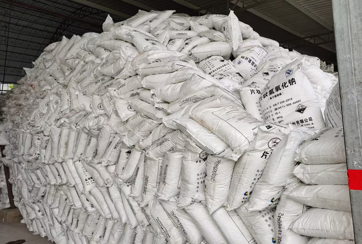 Solid caustic soda is a white flaky or granular crystal.