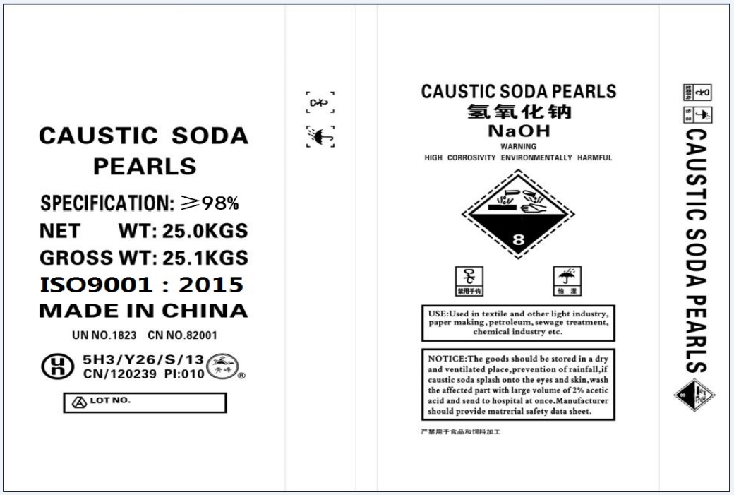 | Sodium hydroxide ≥(%) | 98.0 | 70.0 | 50.0 | 45.0 | 30.0 |